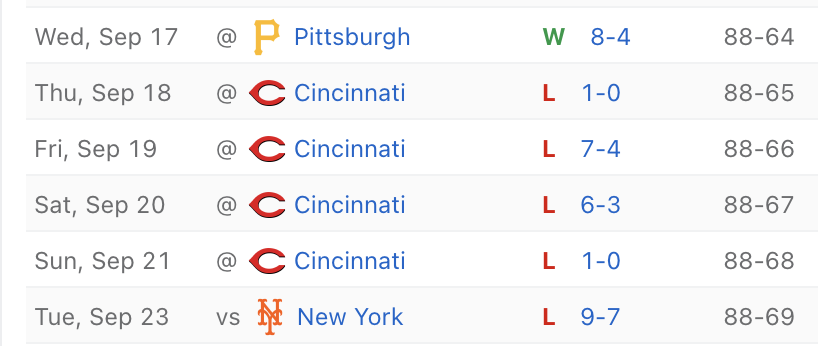 My point is that we’re laying eggs and I hate it. Right before the playoffs and even with a chance to have reclaimed the division miraculously because the Brewers are falling apart. Both of those work together and they both suck.
